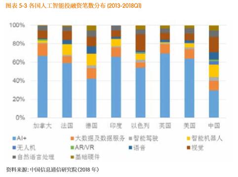 近五年全球人工智能行业投资热点集中在AI+(垂直行业)、视觉、大数据及数据服务和智能机器人等领域。在各类AI+垂直行业中,受资本青睐的领域有商业智能、医疗健康和金融等领域。