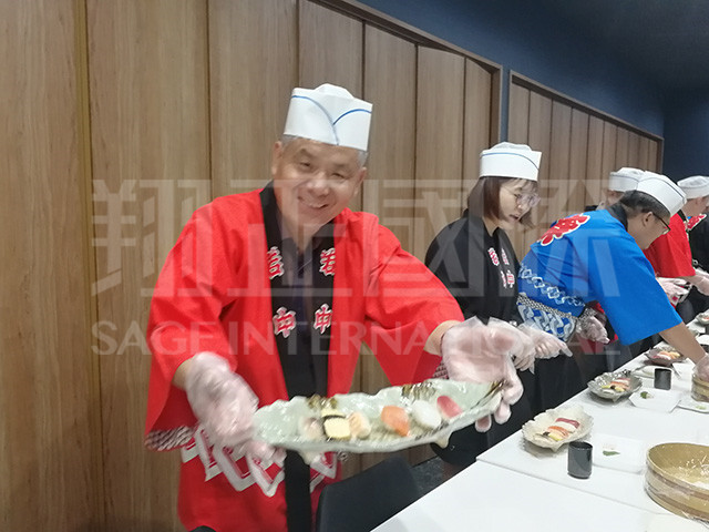 在第二天的行程参访中,我们来到了梅守株式会社,这是一家以寿司经营和烹饪学校教学的企业,阿米巴经营管理之道的践行企业,接待我们的是梅守是星野老师(阿米巴经营博士),作为我们在梅守株式会社的指导,企业参访中我们聆听了星野博士的 课程,并在课程结束后进行非常有趣的寿司制作体验。