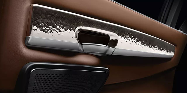 我们可以看到,这些灰色的陨石材料被镶嵌在整个中控台装饰板、V8引擎启停按钮、排档杆和 iDrive 旋钮表面,营造出了一种无的视觉和触觉效果。 Widmanstätten 图案刻画形式,也可以在制动盘和外后视镜盖等地方上看到。由陨石材料制成的镶嵌装饰也被整合到车门上,这所有的一切,都确保了这辆车的奢华和独特性,真正的低调不失奢华啊~~~