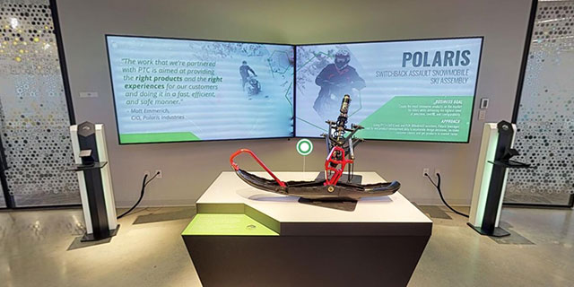 大红色的Polaris雪地车、黄色的山地车、科技感十足的焊接设备,到整齐的医疗器械与生命科学实验室,近距离感受PTC在世界范围内使用技术并与实际使用案例进行交互,是PTC在航空航天与国防、汽车、电子与高科技、生命科学、制造业、石油和天然气、零售和消费品等行业领域,对数字化转型践行的成果证明。