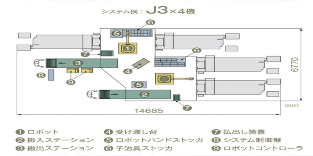 在无人操作的前提下,牧野机床机器人传输系统适合每年约10,000到100,000的生产。它是一个订单批量生产的零件传输系统,可实现流程整合,并根据客户的生产量身定制。