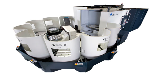 它可以在夜间无人值守操作,牧野机床的托盘交换系统是每年生产约10,000台的理想选择,更是一台机器的多托盘交换系统。