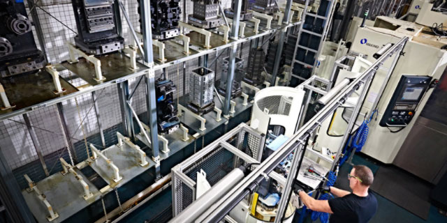 通过将夹具和零件放在托盘上并运输的解决方式,牧野机床托盘传输系统可以在夜间和假日无人值守操作,非常适合每年生产5,000至50,000个单元,可生产100种零件。托盘运输系统,可从一台机器上支持多达15台机器,并可进一步扩展。