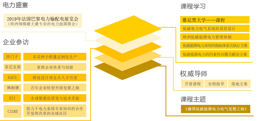 另外,我们还将走进慕尼黑工业大学,学习慕尼黑工业大学教授的《德国低碳能源电力电气发展之路》课程,深入低碳电力电气系统的顶层设计;欧洲低碳能源电力管理体制;低碳能源电力系统的指标体系及执行方案;低碳能源电力的约束性问题及解决方案;经典案例分享等德法电力电气低碳化发展了解。