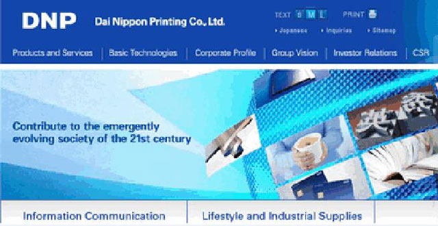 日本DNP印刷株式会社,DNP印刷公司是利用印刷技术可塑性的成功案例。公司是全球大型的印刷企业之一。建立于1876年,总部位于东京,公司开创了铅版印刷日文的先河,率先在日本开始正式的凹版相片印刷。目前拥有20个部门,雇员35,000人。DNP印刷株式会社的主要业务范围为电子出版、商业印刷、包装服务、装修材料、太阳能电池、工业用品、显示原件、电子器件等。