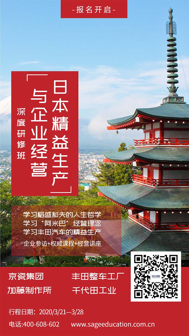 此行,我们将学习原汁原味的精益管理思想,提升企业管理者对精益的理解,推动TPS转化为CPS(中国生产方式,China Production System),实现以高品质、低成本和高效率响应市场需求。2020年3月,与我们一同出发,精益之国——日本。