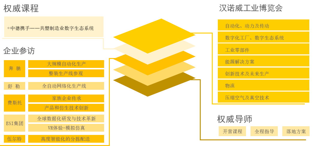 此次行程我们还将探访:世界上首辆汽车的发明者,并创造了无数个奇迹的奔驰公司 总部辛德芬根工厂;依靠科技创新历经百年风雨依然是行业的家族企业费斯托;有180 年历史的德国隐形冠军代表舒勒集团;全球装配和紧固件市场的伍尔特集团;世界领 先的样机数值模拟和制造工艺工程应用力学软件开发者—ESI集团。