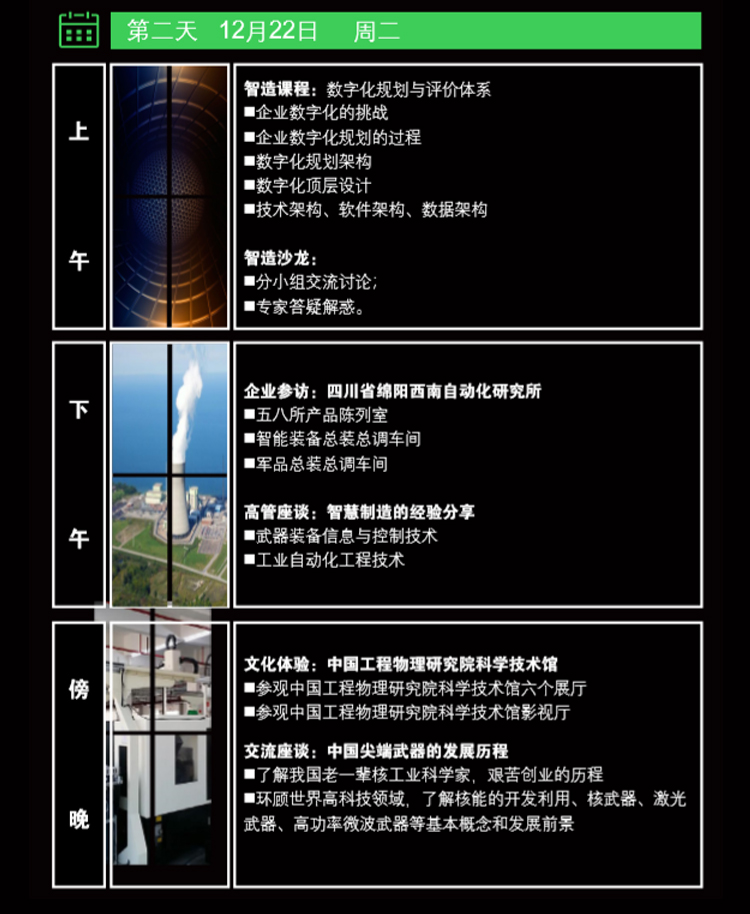 2020年11月23日-25日翔正•智造学堂将再次出发走进四川,学习“大国重器”,在装备制造与智能系统应用方面的成功经验,名额有限,预报从速。