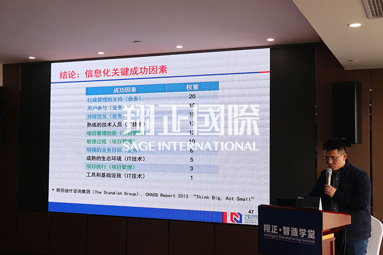 当然了,信息化建设有失败,也会有成功,邓老师也分享了中航工业自控所成功推进信息化建设历程的案例,为学友们提供了制造企业推进信息化建设的实战经验样板。在这两者的基础之上,邓老师根据制造企业在信息化建设历程中通常遇见的四大核心议题,以高屋建瓴的视角,深入本质,化繁为简的方法,也为学友们系统总结了制造企业信息化成功的关键要义。